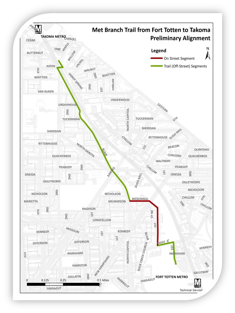 For those keeping score at home: the MBT now flows nearly uninterrupted for eight miles through the District, weaving through Fort Totten, Takoma, Manor Park, and Riggs Park. According to the Mayor’s office, more than 5,000 people use this trail daily.